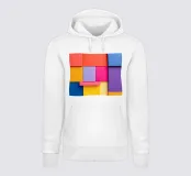 Forme geometriche dai colori vivaci sono disposte in un motivo accattivante. La composizione presenta quadrati e rettangoli di vari colori, creando un gioioso impatto visivo.