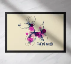 Questa stravagante illustrazione di cani a palloncino rende omaggio alle sculture iconiche dell'arte contemporanea, reimmaginate attraverso linee di inchiostro espressive e spruzzi di rosa vibrante. Fondendo pop art e minimalismo giocoso, cattura lo spirito spensierato dell'arte contemporanea in uno stile fresco e pittorico. Una stampa audace e moderna per collezionisti, creativi e amanti del design. La cornice non è inclusa.