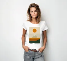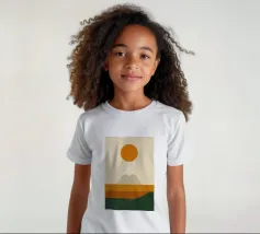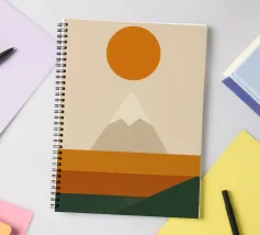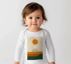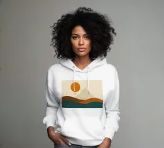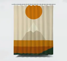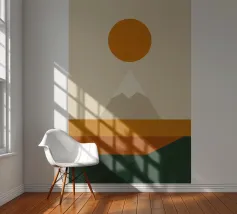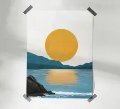 Un omaggio al Giappone grafico, dove il monte Fuji emerge in un deserto di calma, sormontato da un sole ocra che sembra sospeso. Linee pulite, colori caldi e morbidezza minimalista: un'opera che emana calma.