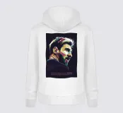 Lionel Messi in stile WPAP è un ritratto sorprendente e colorato del leggendario calciatore, creato utilizzando forme geometriche nitide e toni vivaci. Questo pezzo pop art cattura i tratti iconici e il carisma pacato di Messi, celebrando la sua grandezza attraverso l'audace linguaggio visivo di WPAP (Wedha's Pop Art Portrait).