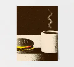 L'abbinamento perfetto per iniziare la giornata o riempire la pancia! Questo disegno presenta un delizioso hamburger e una golosa tazza di caffè, ricca di dettagli e colori accattivanti.