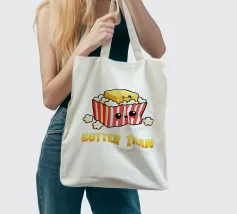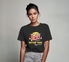 Una simpatica vignetta raffigura una scatola di popcorn sorridente con un blocco di burro in cima, circondato da cuoricini. Il testo recita umoristicamente: "Mi piaci più di chiunque altro!".