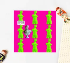 Questa immagine riflette in modo umoristico come spesso si mostri una facciata che non corrisponde alla vera personalità. Ci spinge a riflettere sull'autenticità e sulla differenza tra immagine di sé e realtà.