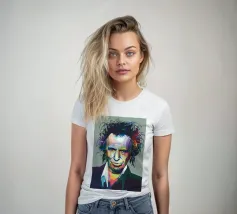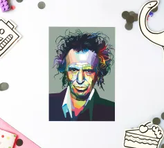 Keef in stile WPAP è un ritratto vibrante e geometrico del leggendario chitarrista dei Rolling Stones. Utilizzando forme audaci e spigolose e una tavolozza di colori sorprendente, l'opera d'arte cattura i suoi lineamenti robusti, la sua espressione iconica e la sua personalità rock 'n' roll. La tecnica WPAP (Wedha's Pop Art Portrait) enfatizza i contrasti netti e la composizione dinamica, riflettendo il suo spirito energico e ribelle.