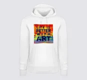 Rosso vivo, giallo brillante e il messaggio: "La vita è migliore con l'arte" Arte che motiva! Un'opera che rende visibile la gioia di vivere.