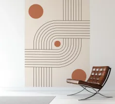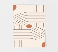 Questo design elegante combina linee pulite e colori caldi della terra per creare un look retrò armonioso. Le linee curve e parallele combinate con cerchi geometrici conferiscono al motivo un'estetica elegante e minimalista. Perfetto per murales, cuscini, tazze e altro ancora, questo disegno dona eleganza e calore senza tempo a qualsiasi ambiente. Per gli amanti del design che apprezzano lo stile boho e le forme moderne, è la scelta ideale per una decorazione o un regalo d'ispirazione.