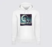 Una splendida illustrazione in stile cartoon di un maestoso lupo argentato che ulula alla luna crescente sotto un cielo stellato. Il lupo, con la sua pelliccia scintillante, si erge fiero su una sporgenza rocciosa, illuminata dalla luce della luna. La scena ĆØ ambientata in un cielo blu e nero profondo, pieno di stelle scintillanti, che evoca un senso di magia e serenitĆ . La luna crescente brilla dolcemente, completando la presenza eterea del lupo. Alberi ombrosi e colline lontane completano l'atmosfera tranquilla e mistica.