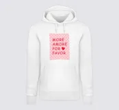 Questo poster presenta la giocosa scritta "More Amore porFavor" in rosso acceso, che appare particolarmente vivace su uno sfondo rosa a pois bianchi. La tipografia e il cuore rosso conferiscono al motivo un aspetto allegro e affettuoso. Nel complesso, l'immagine irradia leggerezza, ottimismo e un'affascinante dose di estetica bonaria.