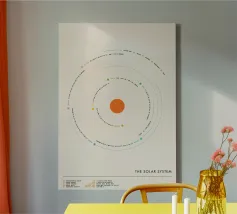 Una visione pulita e moderna della bellezza del nostro sistema solare. Questa infografica minimalista del sistema solare presenta tutti i pianeti principali, i dati chiave e i percorsi orbitali in un layout elegante e di facile comprensione. Perfetta per le aule scolastiche, gli angoli di studio, gli amanti dello spazio e tutti coloro che amano il design intelligente ed estetico.