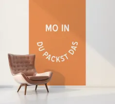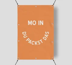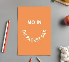 Questo poster vi dà il benvenuto in arancione brillante e vi motiva con una frase chiara. "MOIN" in alto, "DU PACKST DAS" in forma ricurva sotto, come un sorriso che vi accompagnerà per tutta la giornata.