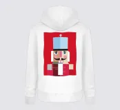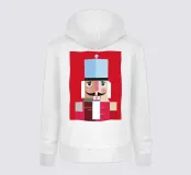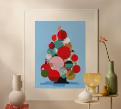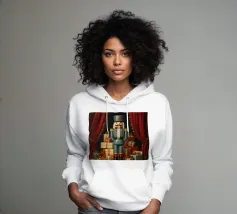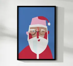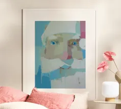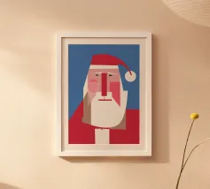 Uno schiaccianoci dall'interpretazione geometrica in un moderno design piatto, creato con forme chiare e un equilibrato spettro di colori rosso, beige e blu pastello. La sua espressione pacata e serena conferisce al classico motivo natalizio un tocco fresco e contemporaneo. La simmetria angolare, i baffi e i dettagli minimalisti rendono l'illustrazione una dichiarazione di stile e modernità per il periodo natalizio.