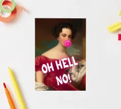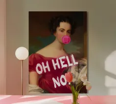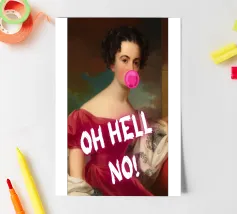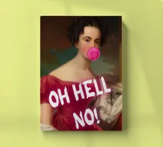 Fate una dichiarazione audace e umoristica con "Oh Hell No!". Questa accattivante stampa pop art fonde magistralmente la ritrattistica classica con un atteggiamento contemporaneo e di sfida. Presenta un'illustre figura storica, vestita in modo elegante, che soffia giocosamente una vibrante bolla di gomma da masticare rosa. L'enfatico testo bianco "OH HELL NO!" sovrasta l'immagine, trasformando il sereno ritratto in una spiritosa espressione di moderna esasperazione. Perfetto per aggiungere personalità e un tocco di fascino ribelle a qualsiasi spazio contemporaneo. Realizzato con un'eccezionale risoluzione di 7000x5000 pixel e 300 dpi, che assicura una nitidezza