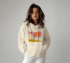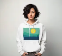 Un gradiente di colori sfumati come un'alba che si fonde con la vastità dell'oceano. Questo disegno irradia calma, spazio e fresca energia.