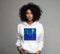 Questa incantevole opera d'arte raffigura una coppia di orsi polari che si ergono fieri sul ghiaccio alla deriva, sotto un cielo notturno luminoso e vorticoso. I blu freddi si fondono con morbidi riflessi dorati per creare un'atmosfera serena ma potente, che evoca la bellezza e la fragilità dell'Artico. Le pennellate strutturate conferiscono alla scena una profondità onirica, mentre il cielo luminoso aggiunge movimento e meraviglia. Perfetto per gli amanti della natura, per i collezionisti di arte naturalistica e per gli appassionati di paesaggi d'atmosfera, questo disegno porta calma, colore e ispirazione in qualsiasi spazio abitativo moderno o ambiente creativo.