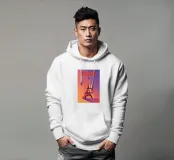 Un poster minimalista e vibrante che cattura tutta la magia di Parigi nell'ora d'oro. La Torre Eiffel si erge elegantemente su una gradazione di viola, rosa e arancione, evocando la poesia di un crepuscolo parigino. Perfetta per un arredamento urbano e chic, questa illustrazione modernizza l'icona francese con stile e morbidezza.