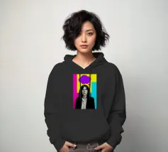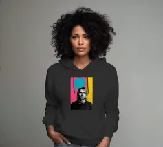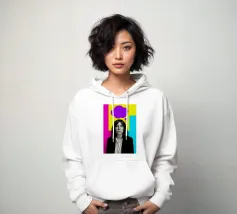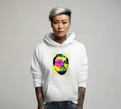 Andy Warhol, il re della pop art, in un omaggio con un colpo di scena: una bolla vocale vuota fluttua sopra la sua testa - su uno sfondo giallo brillante, combinato con allusioni colorate CMYK in ciano, magenta e nero. Tra ritratto, pop e post-ironia. Fa parte della serie Geometric Masters, che decostruisce figure artistiche iconiche utilizzando forme e colori geometrici. Forte, intelligente, moderno.