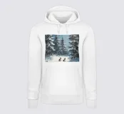 Idilliaco poster invernale con due conigli seduti in una foresta innevata. I fiocchi di neve che cadono dolcemente e i maestosi abeti creano un'atmosfera tranquilla e fiabesca. Questo murale combina motivi animali e natura invernale ed è perfetto per decorare il soggiorno, la camera da letto o la stanza dei bambini. Un'opera d'arte che porta la pace, l'intimità e la magia dell'inverno in ogni casa, ideale per gli amanti degli animali e della natura.