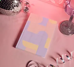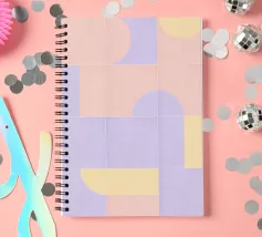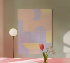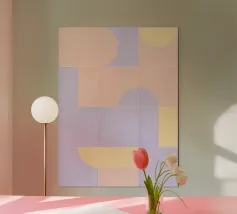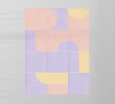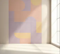 Questo design giocoso presenta un vivace mix di colori pastello e forme geometriche, evocando un'atmosfera nostalgica ma moderna.