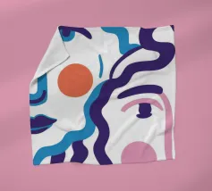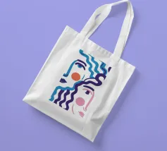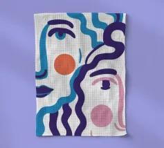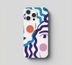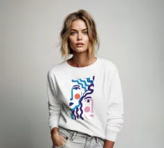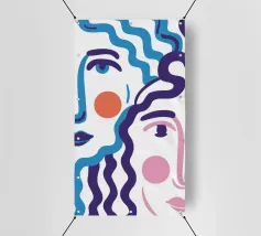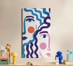 Il ritratto astratto di un volto è creato con linee blu fluide e ondulate su uno sfondo bicolore, dando vita a un'opera d'arte fluida, espressiva e moderna.