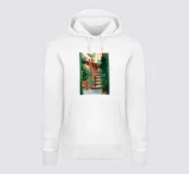 Questo dipinto raffigura una scala circondata da piante in vaso, creando un'oasi verde in un ambiente interno. La scena è rilassante e piena di bellezza naturale, e sottolinea l'armonia tra architettura e natura.