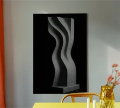 Una presenza forte e silenziosa. Questo poster mostra una scultura verticale scolpita come un'onda congelata nella pietra. Il potente contrasto tra luce e materia la rende un'opera ipnotica e architettonica per gli amanti dell'art brut e delle linee potenti.