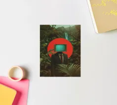 Un collage digitale surreale che mescola natura, tecnologia e distacco esistenziale. Una figura senza volto con un monitor CRT retrò al posto della testa, in piedi in una giungla tropicale. Sullo schermo si legge "YOU'RE OFFLINE", una tranquilla ribellione contro l'iperconnettività. Con forti contrasti, colori vivaci e un sorprendente sole rosso dietro il soggetto, quest'opera cattura la sensazione di disconnessione in un mondo iperconnesso. Perfetto per gli amanti del surrealismo botanico, dell'arte moderna del collage e dell'evasione digitale.
