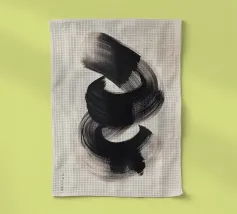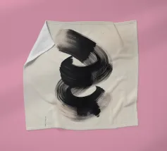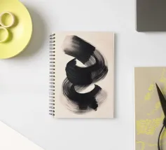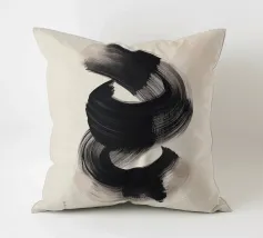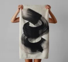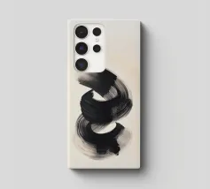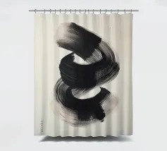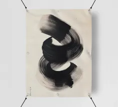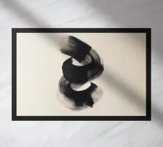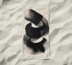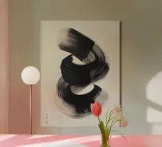 Un'audace e fluida pennellata nera in movimento dinamico su uno sfondo neutro, che evoca semplicità, equilibrio e armonia in una composizione artistica minimalista ispirata alla filosofia Zen.