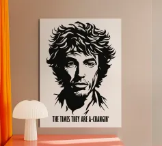 Iconico ritratto in bianco e nero di Bob Dylan dall'anima ribelle: questa potente estetica dello stencil combina la street art di Banksy con la ritrattistica classica. I contorni ridotti e le ombre drammatiche creano un'icona senza tempo del cambiamento culturale. Il contrasto minimalista tra bianco e nero esalta l'intensità poetica, mentre la texture dei capelli ricci appare quasi scultorea. Un poster per gli amanti della musica e per chiunque celebri il cambiamento sociale: pura filosofia rock'n'roll da appendere al muro.