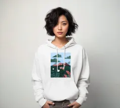 Appollaiata delicatamente in cima a un fiore sbocciato, riposa sotto un sole nascente, circondata da foglie che scorrono e da colline dipinte con delicatezza. Tutto in questo mondo sembra calmo e intenzionale, un luogo immaginario in cui la crescita avviene silenziosamente, dall'interno. Un ritratto pacifico del diventare, dell'appartenere e del fiorire alle proprie condizioni.