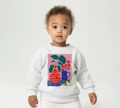 Le nostre felpe per neonati sono realizzate all'85% in cotone biologico ed etico e al 15% in poliestere riciclato.