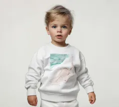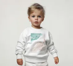 Le nostre felpe per neonati sono realizzate all'85% in cotone biologico ed etico e al 15% in poliestere riciclato.