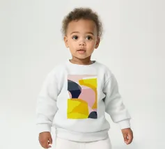 Le nostre felpe per neonati sono realizzate all'85% in cotone biologico ed etico e al 15% in poliestere riciclato.