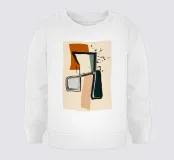 Forme astratte e pennellate decise nei toni della terra si combinano con uno sfondo chiaro. La composizione presenta rettangoli sovrapposti e schizzi a forma libera, creando un look dinamico e moderno.