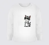 Un gatto cool che indossa occhiali da sole si erge sicuro di sé a braccia incrociate, circondato da un effetto scintillante. Accompagnato dal testo umoristico "Ammettilo, la vita sarebbe noiosa senza di me", il disegno emana fascino e attitudine.