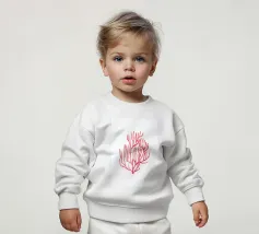 Le nostre felpe per neonati sono realizzate all'85% in cotone biologico ed etico e al 15% in poliestere riciclato.
