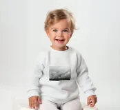 Le nostre felpe per neonati sono realizzate all'85% in cotone biologico ed etico e al 15% in poliestere riciclato.