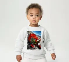 Le nostre felpe per neonati sono realizzate all'85% in cotone biologico ed etico e al 15% in poliestere riciclato.