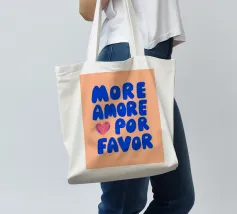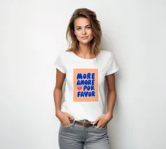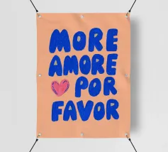 "More Amore, por favor" è un'illustrazione di testo moderna a grandi caratteri blu su un morbido sfondo arancione. Questa romantica grafica combina il fascino italiano con un'allegra sensazione estiva e porta l'amore in ogni stanza. Ideale per gli amanti della tipografia contemporanea e dell'atmosfera di Ibiza!