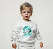 Le nostre felpe per neonati sono realizzate all'85% in cotone biologico ed etico e al 15% in poliestere riciclato.