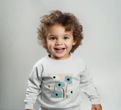 Le nostre felpe per neonati sono realizzate all'85% in cotone biologico ed etico e al 15% in poliestere riciclato.