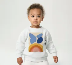 Le nostre felpe per neonati sono realizzate all'85% in cotone biologico ed etico e al 15% in poliestere riciclato.