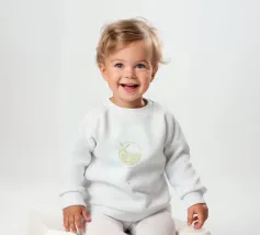 Le nostre felpe per neonati sono realizzate all'85% in cotone biologico ed etico e al 15% in poliestere riciclato.