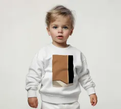 Le nostre felpe per neonati sono realizzate all'85% in cotone biologico ed etico e al 15% in poliestere riciclato.