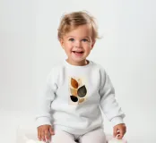 Le nostre felpe per neonati sono realizzate all'85% in cotone biologico ed etico e al 15% in poliestere riciclato.