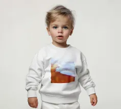 Le nostre felpe per neonati sono realizzate all'85% in cotone biologico ed etico e al 15% in poliestere riciclato.