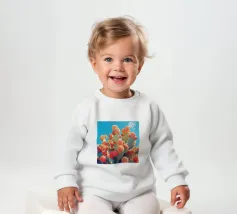 Le nostre felpe per neonati sono realizzate all'85% in cotone biologico ed etico e al 15% in poliestere riciclato.