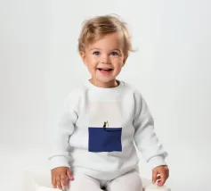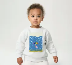 Le nostre felpe per neonati sono realizzate all'85% in cotone biologico ed etico e al 15% in poliestere riciclato.