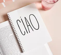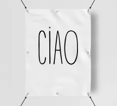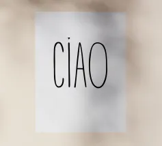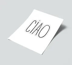 Ciao, ciao in Italia. Tipografia in nero e bianco (trasparente). È possibile cambiare il colore dello sfondo. Poster tipografico minimalista.