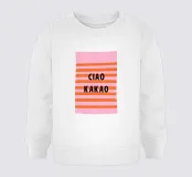 "Ciao Kakao" - una striscia d'addio alla moda in una tipografia elegante che combina il fascino italiano con un'allegra tavolozza di colori rosa e arancione. Ideale per un poster moderno e minimalista!
