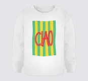 Un simpatico poster tipografico dal sapore italiano: la scritta "CIAO!" dipinta a mano in rosso vivace contrasta con lo sfondo a righe in giallo e turchese. Il mix di pennellate libere e colori retrò rende il disegno un perfetto richiamo visivo per cucine, corridoi o studi creativi. Un saluto allegro - forte, colorato e affascinante, mediterraneo.